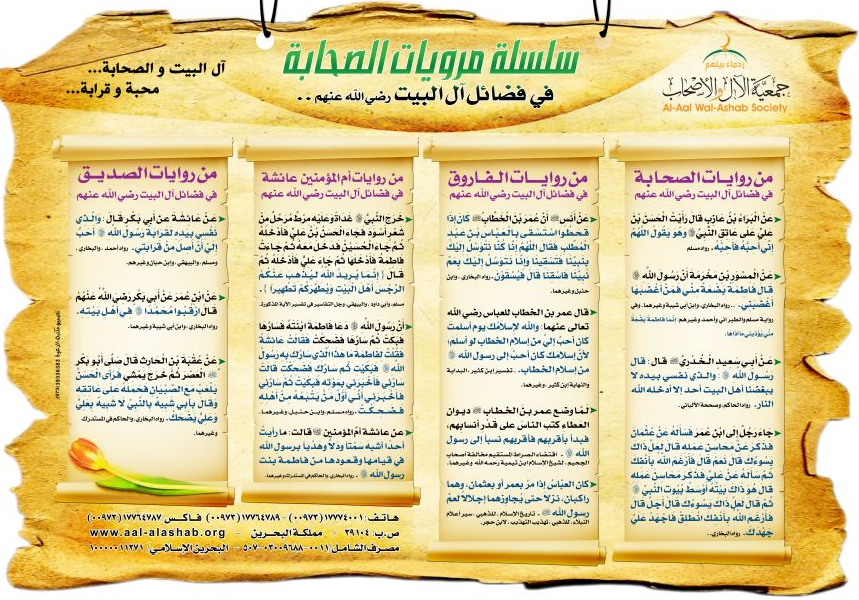 بوستر يحتوي على بعض مرويات الصحابة في فضائل آل البيت رضي الله عنهم.
