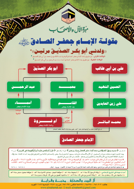 بوستر يحتوي على شجرة نسب الإمام جعفر الصادق رحمه الله، وهي تفيد أن الآل والأصحاب شيء واحد، يسمون أبنائهم بأسماء بعض، والمصاهرة قائمة بين الطرفين قبل وبعد الأحداث الفتنة، مما يؤكد استمرار العلاقة الحميمة بين الآل والأصحاب والتابعين ومن بعدهم.