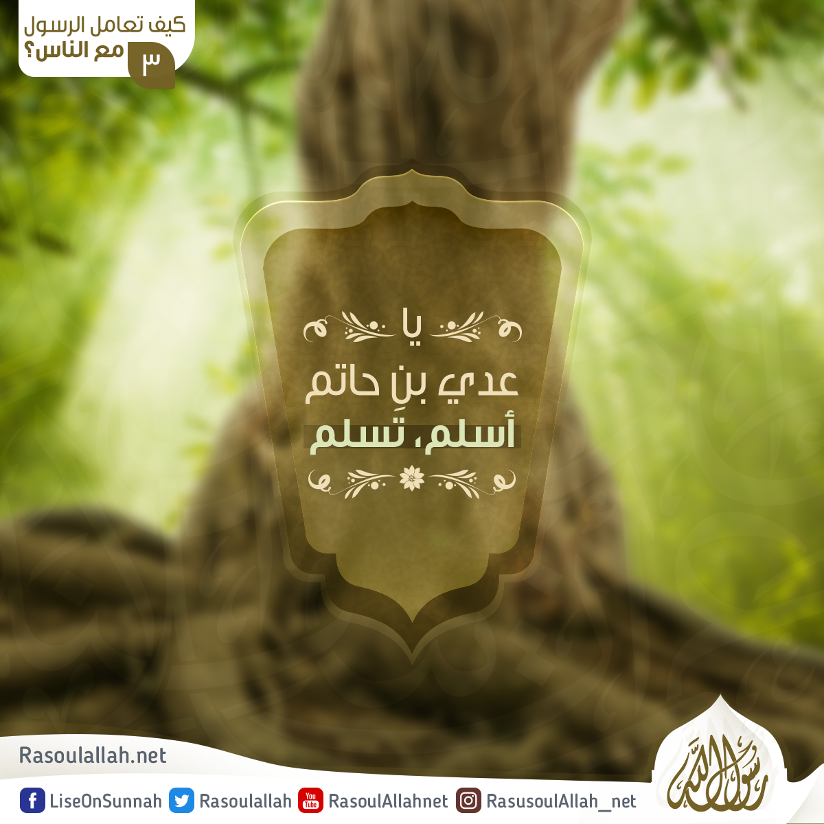 عندما وقعت أختُ عدي بن حاتم في أسْر المسلمين، عاملها رسول الله معاملة كريمة، وبقِيَت معززة مكرمة، ثم كساها النبي - صلَّى الله عليه وسلَّم - وأعطاها ما تتبلغ به في سفرها، وعندما وصلت إلى أخيها في الشام، شجَّعته على الذهاب لرسول الله - صلَّى الله عليه وسلَّم - فتأثَّر بنصيحتها وقدِم على المدينة.