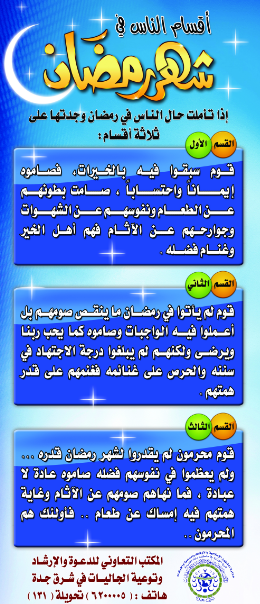 بوستر يبين أن حال الناس في رمضان على ثلاثة أقسام.