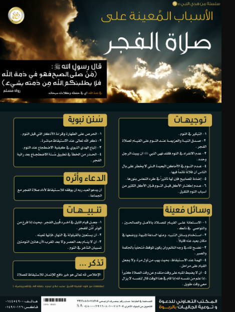 بوستر متميز يمكن قراءته دون تحميل يحتوي على بعض الأسباب المعينة على صلاة الفجر