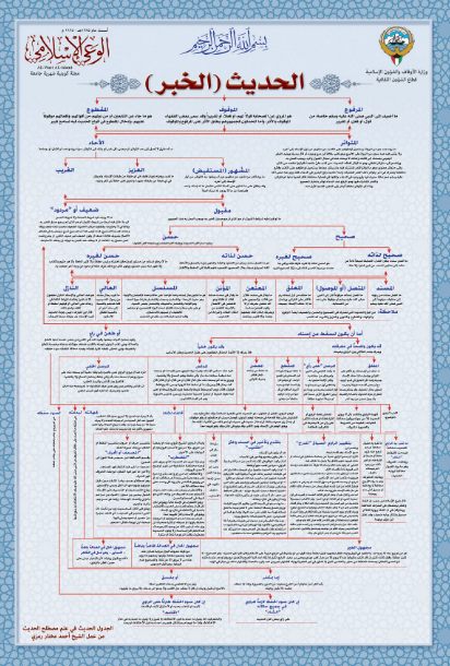 بوستر متميز من إعداد، الشيخ: أحمد مختار رمزي - رحمه الله - احتوى على رسم توضيحي يبين مسائل علم مصطلح الحديث باختصار.