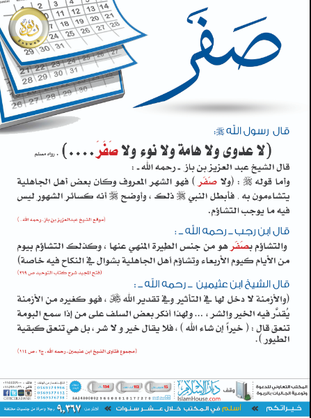 بوستر يحتوي على أقوال بعض العلماء عن التشاؤم بشهر صفر.