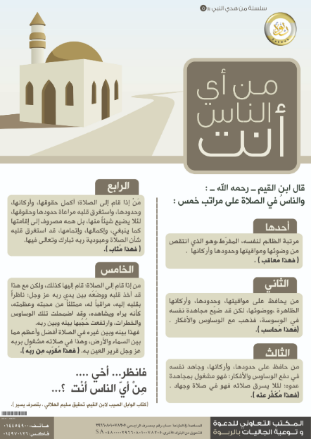 بوستر يبين أقسام الناس في الصلاة، فتأملها أي الزائر الكريم؛ لتعرف من أي الناس أنت