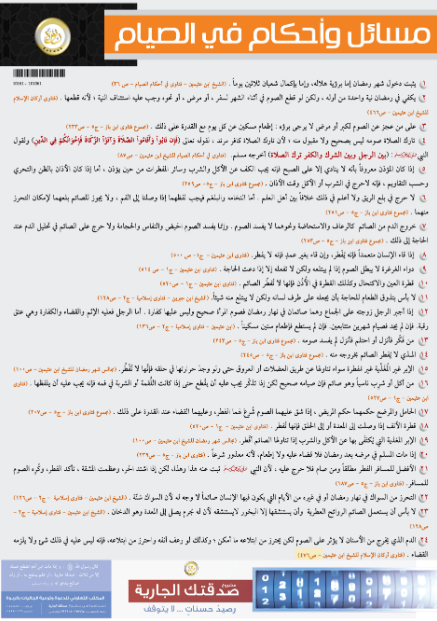 بوستر متميز يحتوي على أربعة وعشرين مسألة من مسائل وأحكام الصيام التي يكثر السؤال عنها.