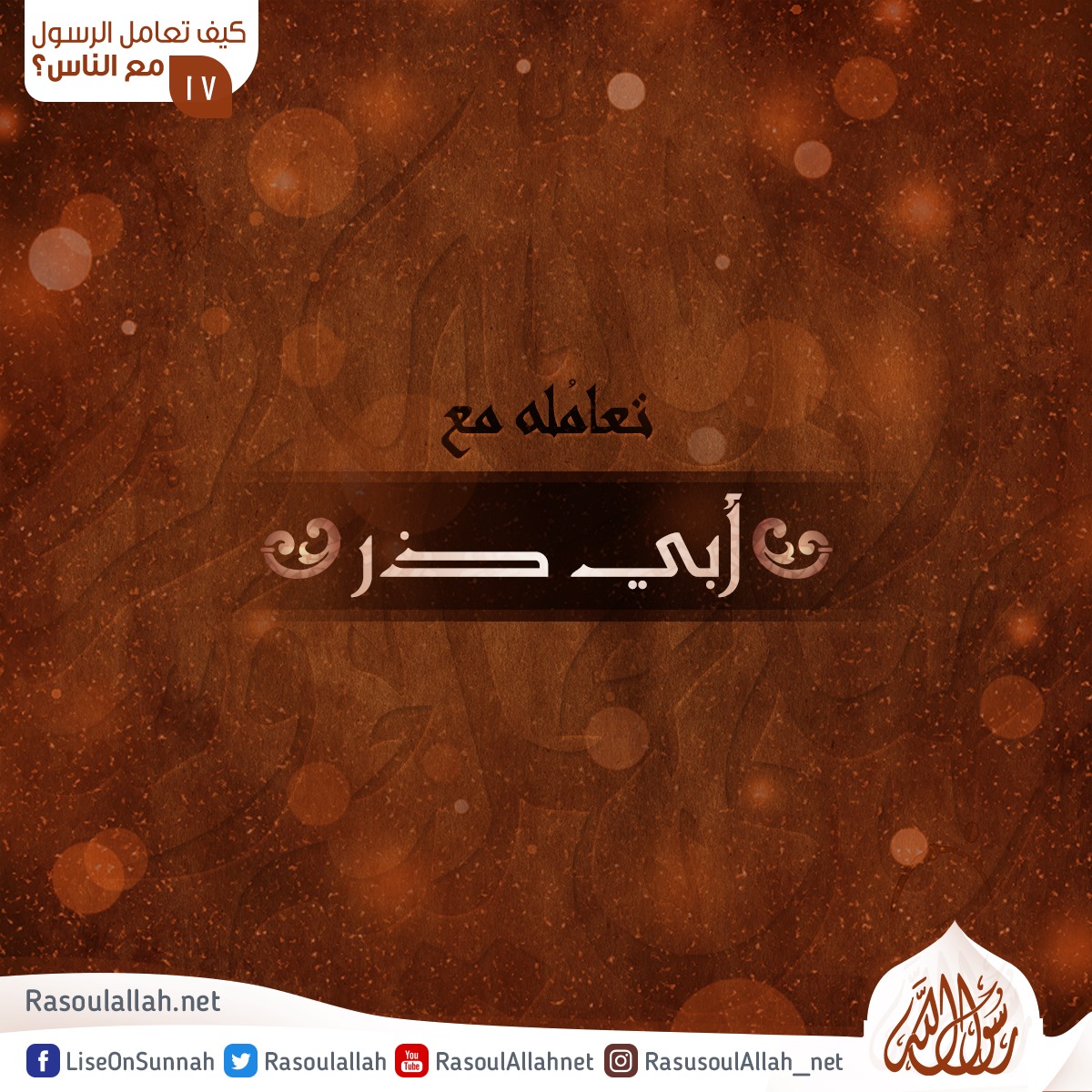 تعامُله مع أبي ذر:كان رسول الله بما أوتي من فَهْم، قد أدرك نفسية أبي ذر التي تكره الظلم، وتأخذ نفسها بالشدة والزهد، فوجَّهه إلى أن يكون نصيرًا للمحتاجين ثابتًا على مبدأ الحق، وإن خالفه الناس؛ ولأنه فَهِم تلك النفسية العازفة عن الدنيا