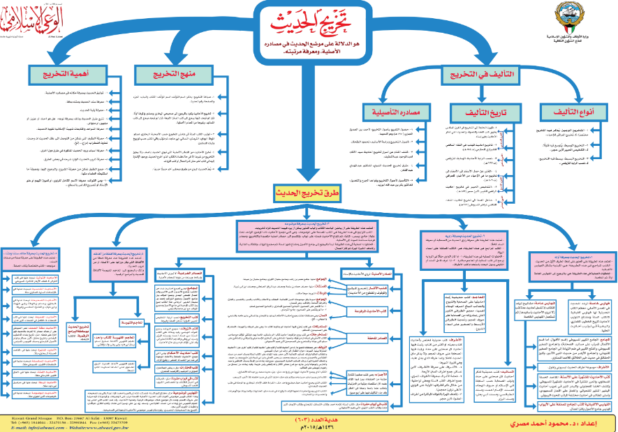 تخريج الحديث : بوستر متميز من إعداد، الدكتور: محمود أحمد مصري - أثابه الله - يحتوي على رسم توضيحي يبين طرق تخريج الحديث، مع بعض المسائل الأخرى.