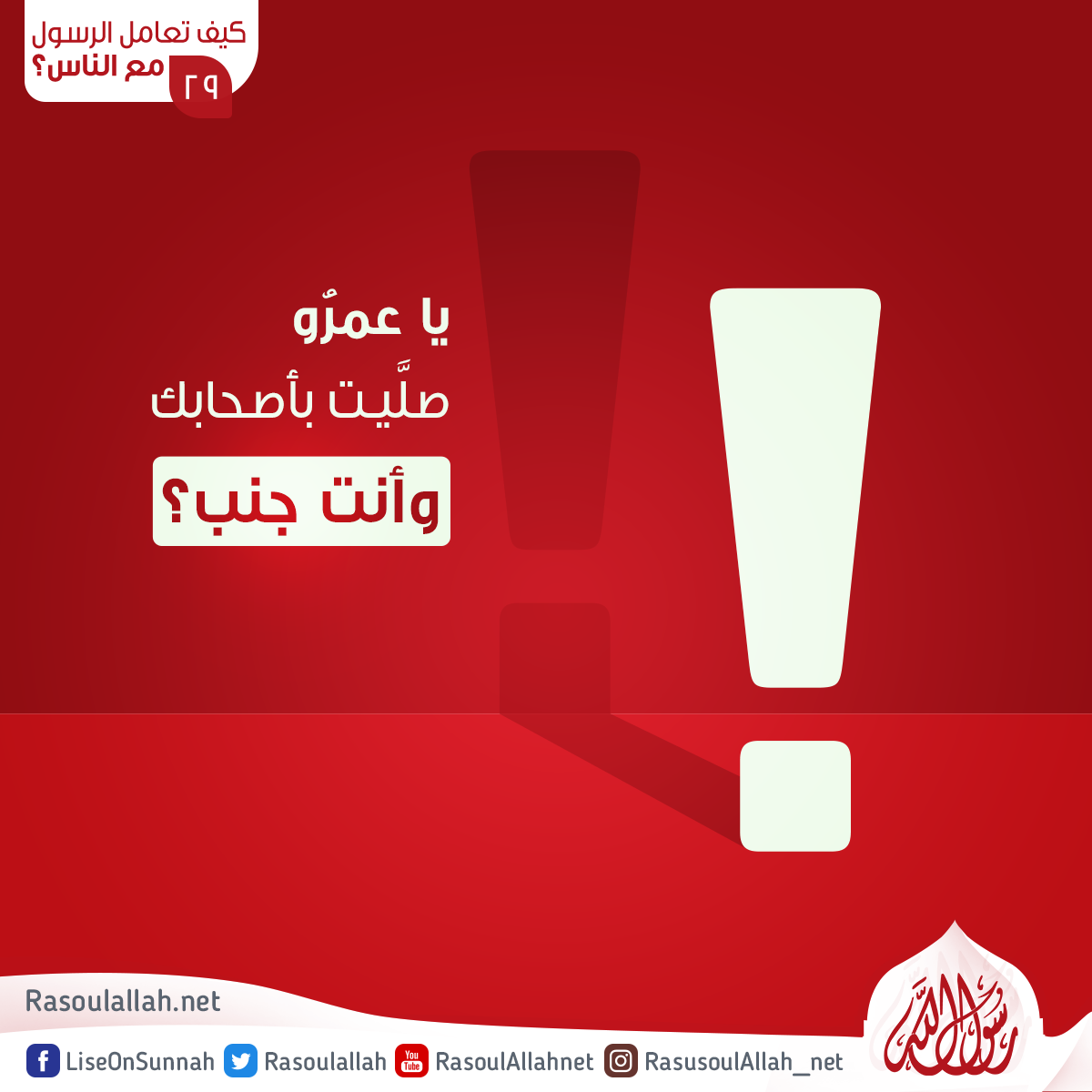 ثم نراه صلى الله عليه وسلم مع عمرو بن العاص أيضًا متفهِّمًا ورافعًا للحرج؛ إذ حدث أن احتلم عمرو بن العاص في ليلة باردة، وخَشِي على نفسه إن اغتسل أن يعتلَّ، فتيمَّم وصلَّى بالناس.