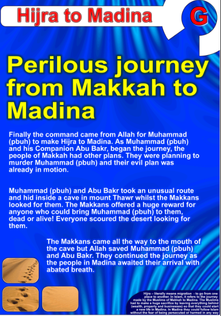 Hijra to Madina: Perilous journey from Makkah to Madinah.
