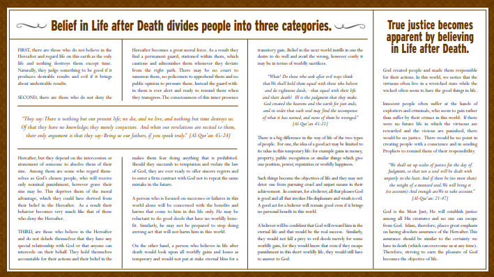 In this pamphlet, we talk about the life after death as Islam taught us in the Quran and the Sunnah.