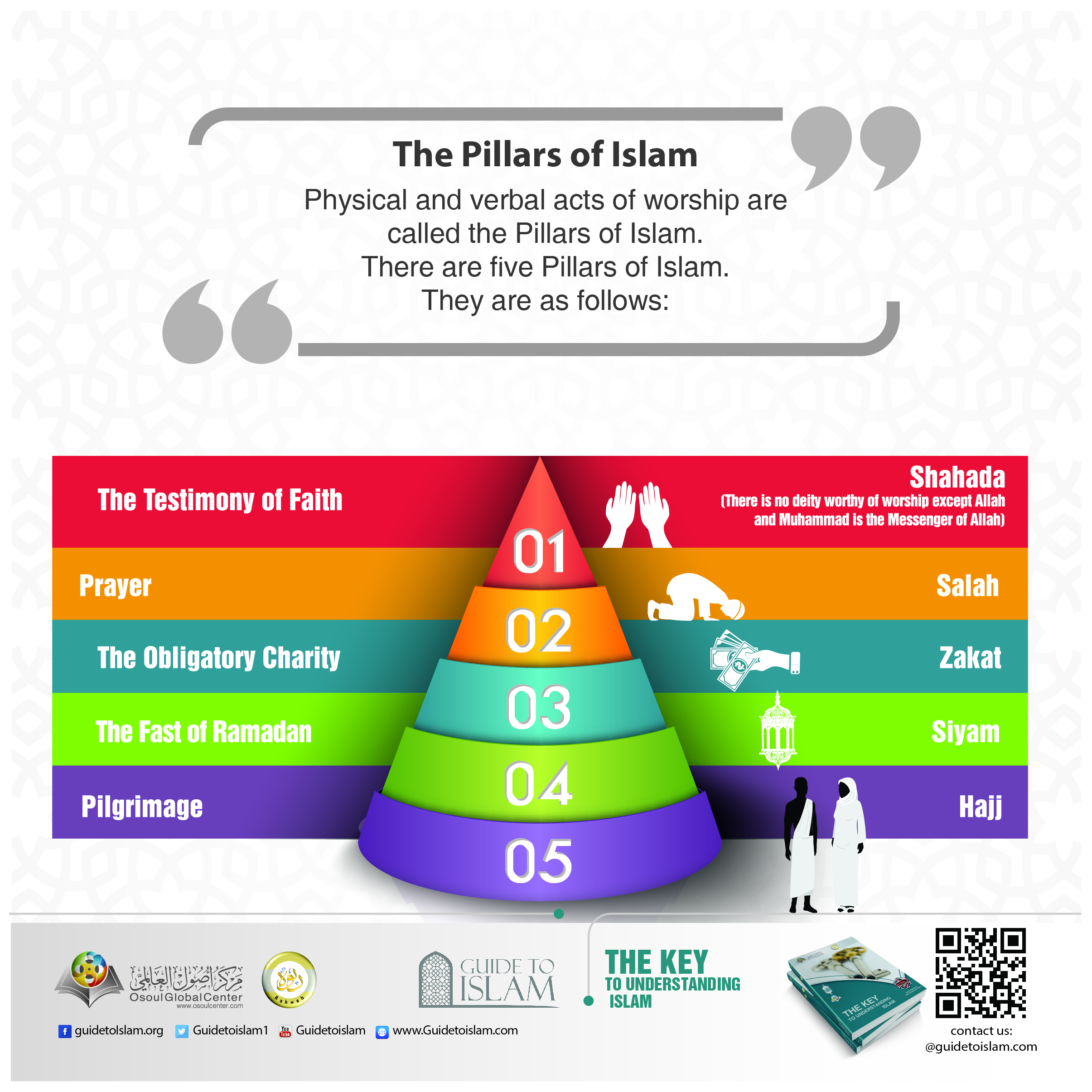 Physical and verbal acts of worship are called the pillars of Islam. There are five pillars of Islam. They are as follows: