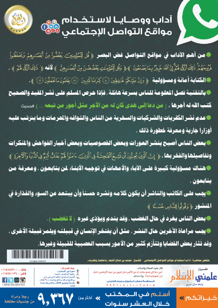 بوستر يحتوي على بعض الوصايا لاستخدام مواقع التواصل الاجتماعي.