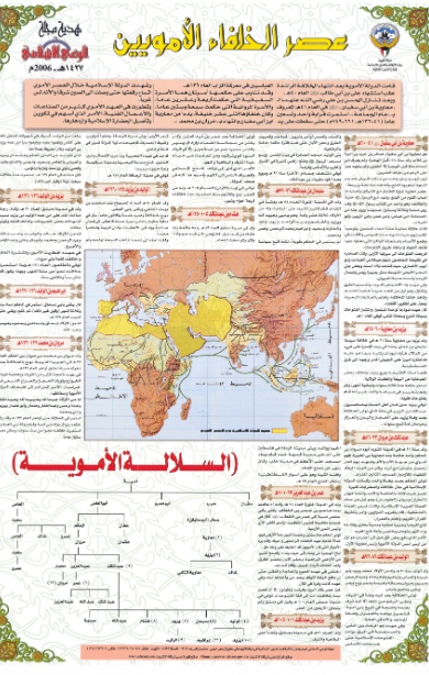 بوستر من إصدار مجلة الوعي الإسلامي، يحتوي على رسم توضيحي، وتعريف مختصر بعصر الخلفاء الأمويين.