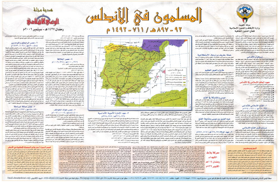 بوستر من إصدار مجلة الوعي الإسلامي، يحتوي على رسم توضيحي، وتعريف مختصر بالمسلمين في الأندلس.