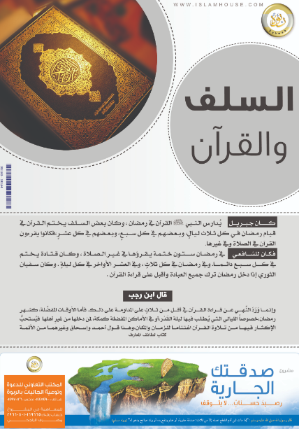 بوستر يبين حال النبي - صلى الله عليه وسلم - وكذلك أحوال بعض السلف مع القرآن الكريم.