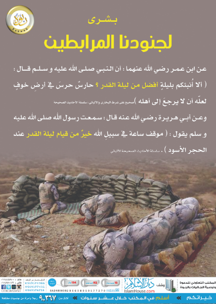 بوستر متميز يحتوي على فضل الرباط في سبيل الله، ومنها، حديث: