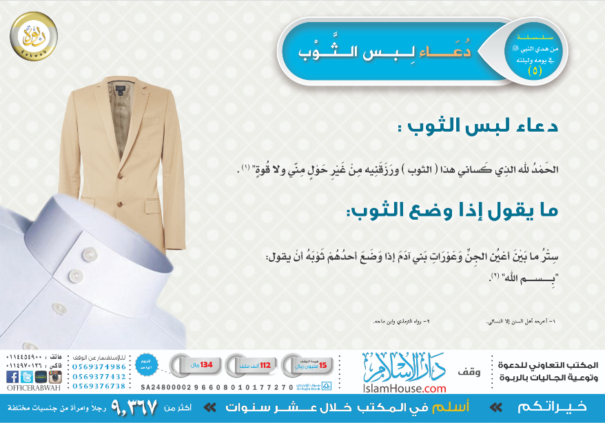 بوستر متميز من إعداد مكتب جاليات الربوة يحتوى على دعاء لبس الثوب.