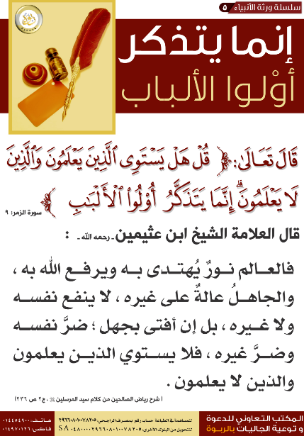 {قُلْ هَلْ يَسْتَوِي الَّذِينَ يَعْلَمُونَ وَالَّذِينَ لا يَعْلَمُونَ إِنَّمَا يَتَذَكَّرُ أُوْلُوا الأَلْبَابِ}.