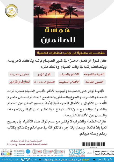 بوستر يحتوي على بعض المنهيات التي ينبغي على المسلم اجتنابها، خاصة في الصيام