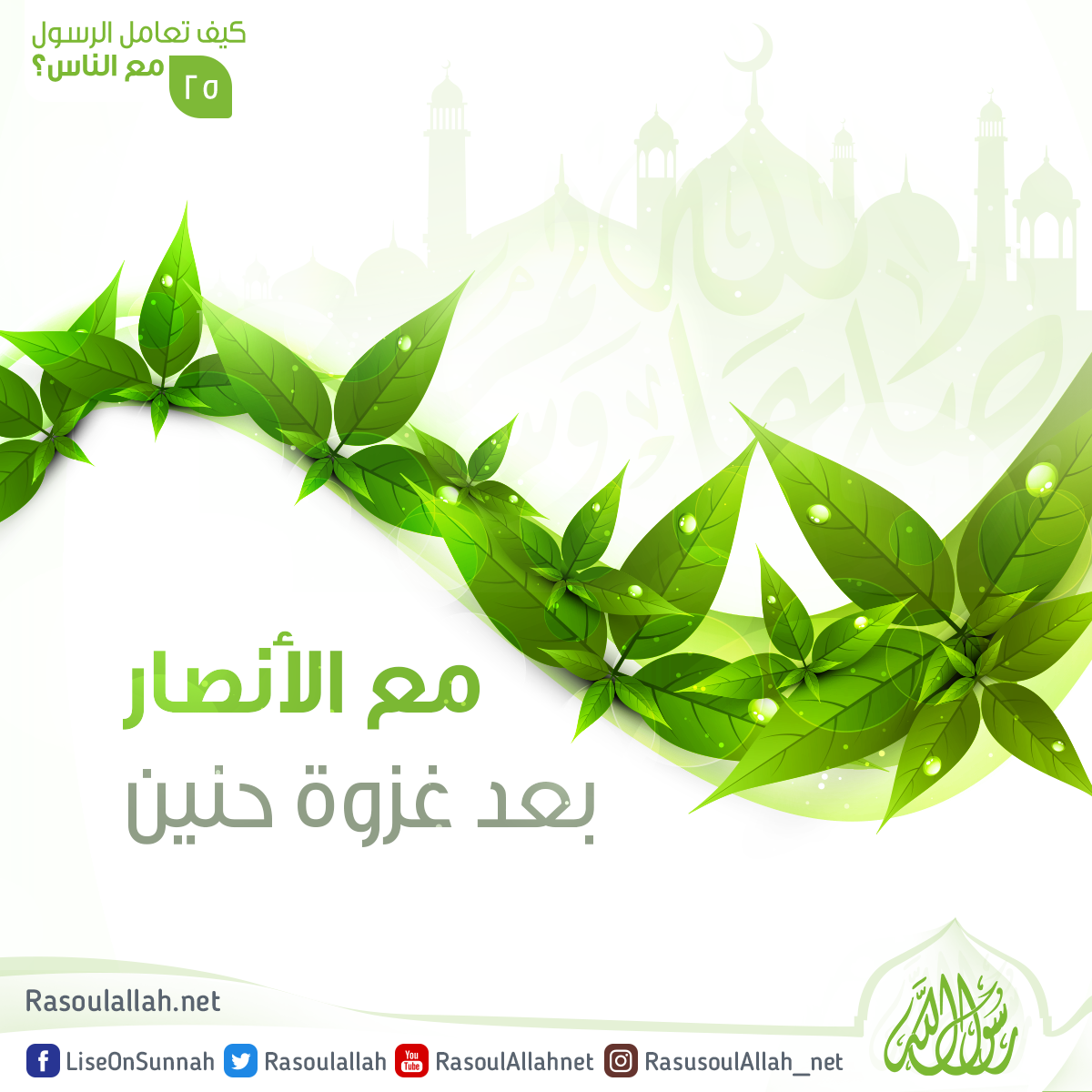 مع الأنصار بعد غزوة حنين:وإننا لنعجب من موقف الرسول - صلَّى الله عليه وسلَّم - من الأنصار بعد غزوة حنين؛ إذ أدرَك ما بنفوسهم، فتعامل مع نفسيَّاتهم المتأثرة بحبٍّ بالغ حتى بكَت قلوبهم، ودمعت أعينهم تأثُّرا وحبًّا لرسول لله، وإيثارًا لِما عند الله، فلله درُّه من معلِّم!