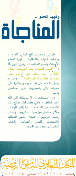بوستر يبين أن ليالي رمضان تاج ليالي العام، ودجاها ثمينة بظلمائها، فيها تصفو الأوقات، وتحلو المناجاة.