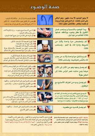 تصميم يحتوي على رسم توضيحي يُبيِّن صفة الوضوء الصحيحة.