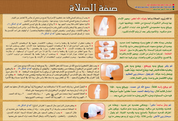 تصميم يبين صفة صلاة النبي - صلى الله عليه وسلم - باختصار.