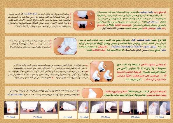 تصميم يبين صفة صلاة النبي - صلى الله عليه وسلم - باختصار.