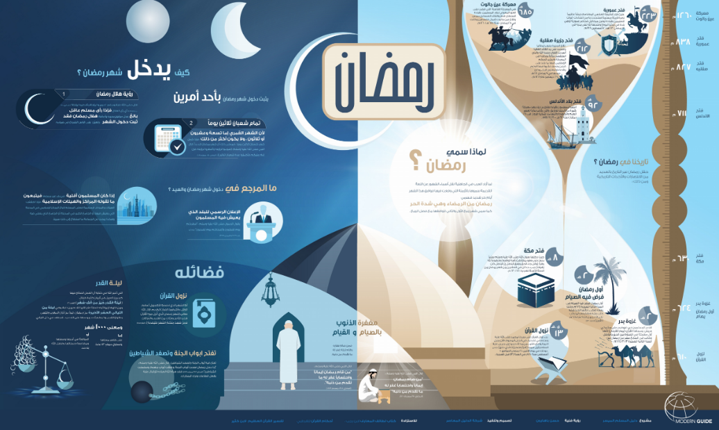 إنفوجراف يحتوي على معلومات عن شهر رمضان، وبعض فضائله، وأشهر المعارك والفتوحات الإسلامية التي حدثت فيه، بالإضافة إلى كيفية ثبوت دخوله، وبعض الأحكام المتعلقة به.