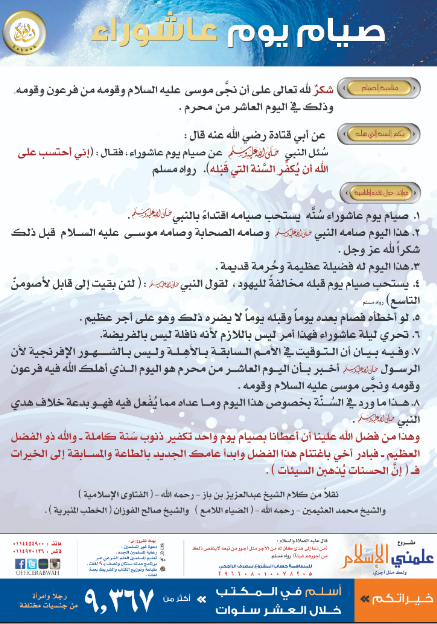 عدة بوسترات متميزة تبين فضل صيام يوم عاشوراء - العاشر من شهر الله المحرم -، ومراتب صيامه، ومناسبته.