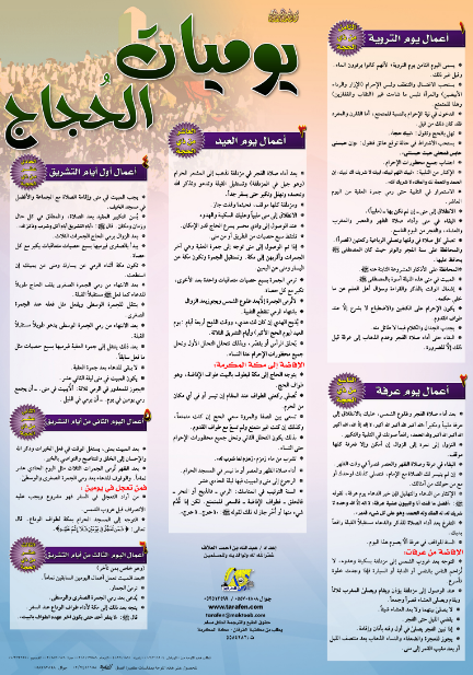 بوستر يحتوي على ملخص لما ينبغي للحاج أن يفعله خلال أيام الحج كلٌّ حَسَبَ نُسُكه.