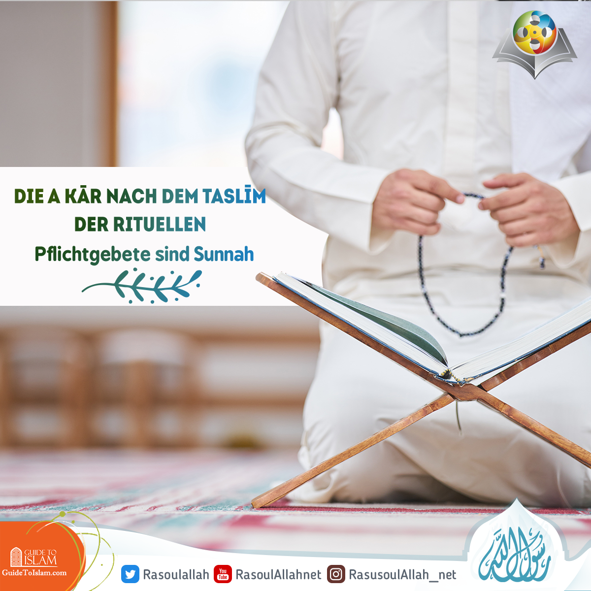 „Es gibt Äußerungen nach jedem Pflichtgebet, wer sie sagt oder tut, wird nicht enttäuscht: 33-mal Tasbīḥ (Subḥan Allāh), 33-mal Taḥmīd (Al-Ḥamdu lillāh) und 34-mal Takbīr (Allāhu Akbar).“