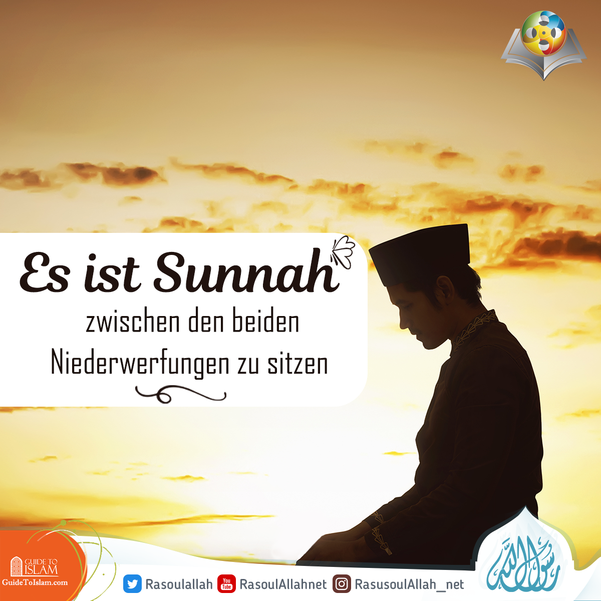 „… Als der Prophet zwischen den beiden Niederwerfungen saß, saß er auf seinem linken Fuß und stellte seinen rechten Fuß aufrecht.“