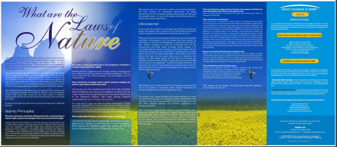 There is a question on the cover of the brochure saying, "Do you wish that there were laws to protect the health and well-being of people, animals, planets, trees, land, water, … in fact the whole planet? Well- there are!
