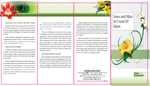 This pamphlet shows how Islam sees the Prophet Jesus and his mother Mary. In Islam, the Prophet Jesus is not a god or a son of God. He was not crucified nor died for our sins. He was born in a miraculous way and had some miracles from Allah which proved his prophethood.