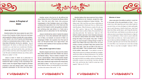 This pamphlet shows how Islam sees the Prophet Jesus and his mother Mary. In Islam, the Prophet Jesus is not a god or a son of God. He was not crucified nor died for our sins. He was born in a miraculous way and had some miracles from Allah which proved his prophethood.