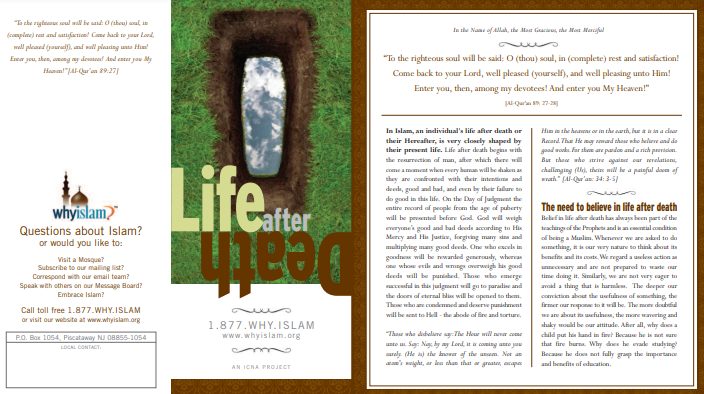 In this pamphlet, we talk about the life after death as Islam taught us in the Quran and the Sunnah.