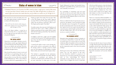 In this pamphlet we show the status women in Islam and are they liberated or subjugated.