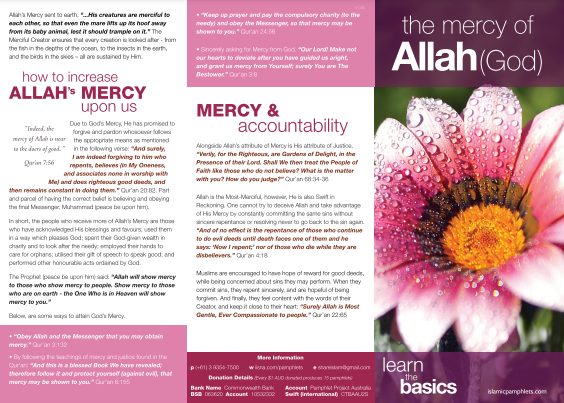 This pamphlet handles the issue of Allah’s mercy through some points: examples of Allah’s mercy, mercy towards the creation and how to increase Allah’s mercy upon us along with other useful points.