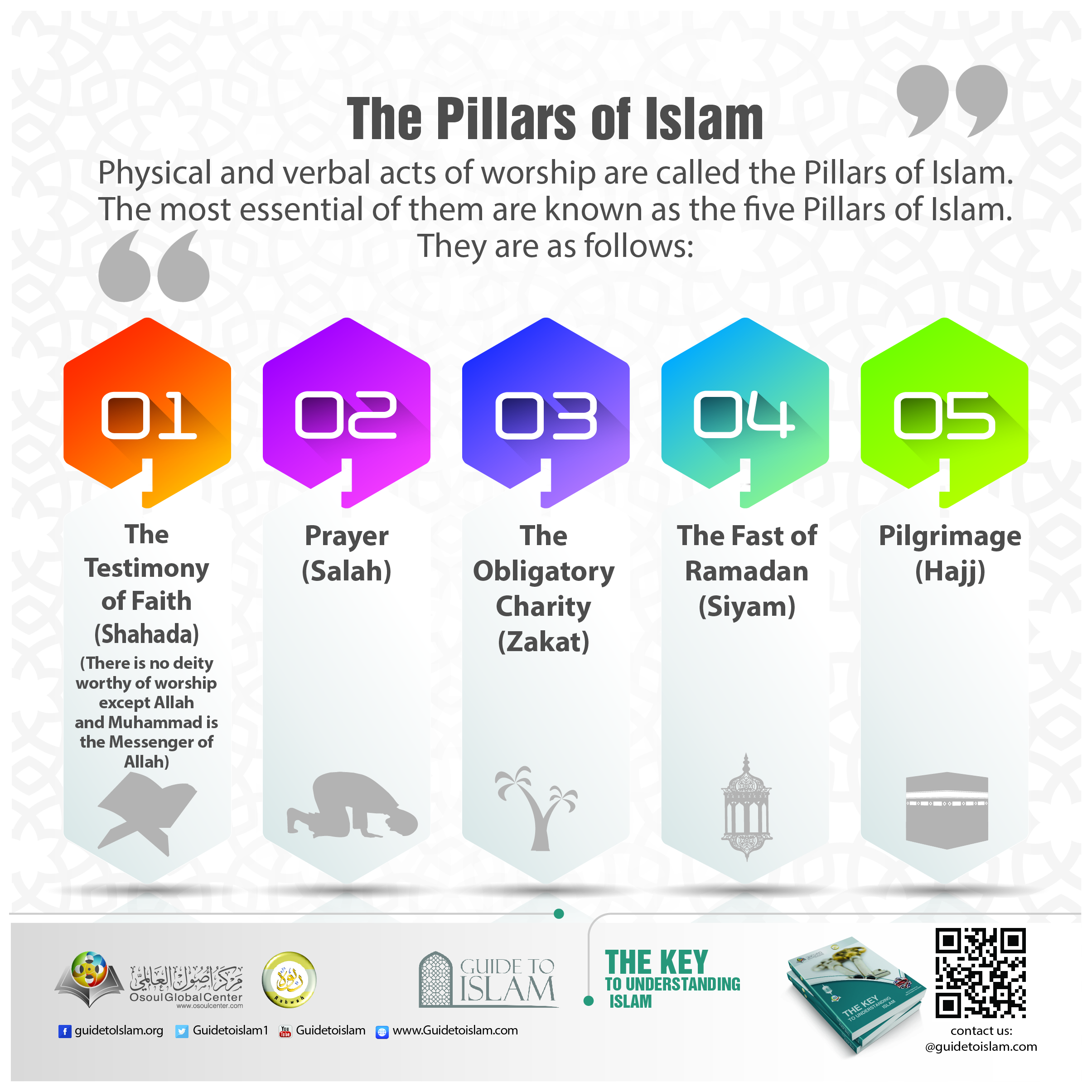 Physical and verbal acts of worship are called the pillars of Islam. There are five pillars of Islam. They are as follows: